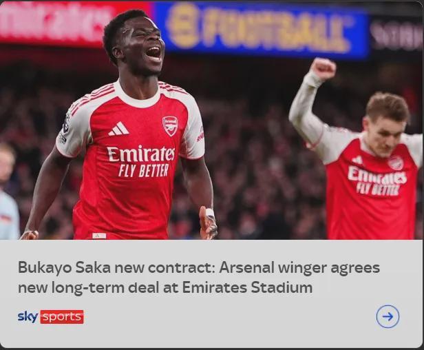说起萨卡,他已经同意续约了,这个下面专门说。